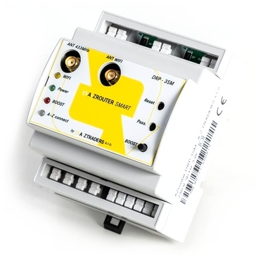 A-Z AZ Router Smart 3F, regulátor vlastní spotřeby, fotovoltaická elektrárna, třífázové měření, měřící jednotka DRP-3SM, regulační jednotka DRP-3SL, přetok energie, HDO, MODE, modul reálného času, bezdrátové propojení, proudový transformátor AZC-5050, anténa 433 MHz, anténa Wi-Fi, anténa 3dBi