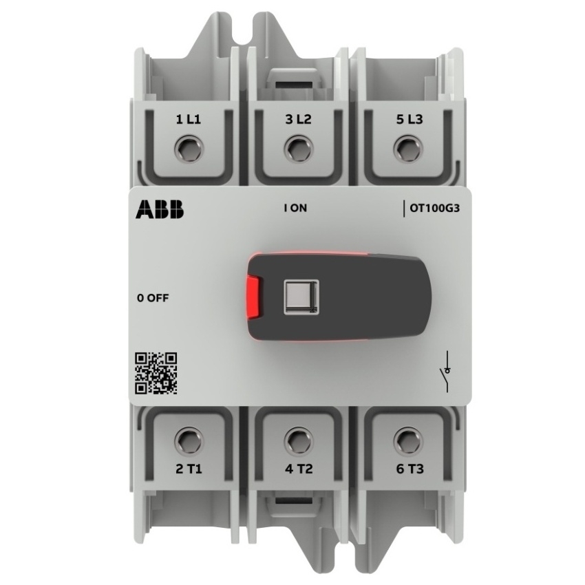 ABB ODPÍNAČ OT100G3-3BS 3-PÓLOVÝ ITH=100A 100A/AC-23A/415V 100A/AC-22A/415V ZADNÍ MONTÁŽ VČ. UZAM. RUKOJETI PRO PŘÍMÉ OVL. 1SCA162507R1001