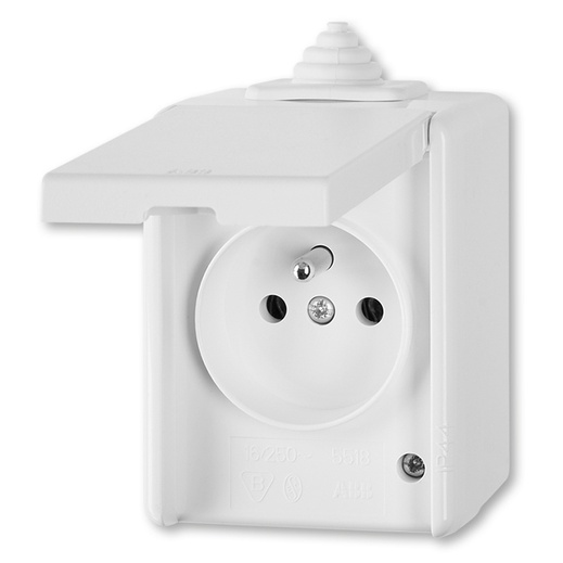 ABB Praktik 5518-2929 B je nástěnná zásuvka jednonásobná s víčkem v bílé barvě s krytím IP44.