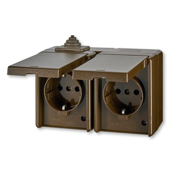 ABB PRAKTIK 5518-3029 H ZÁSUVKA DVOJNÁSOBNÁ IP44 SCHUKO S VÍČKY HNĚDÁ