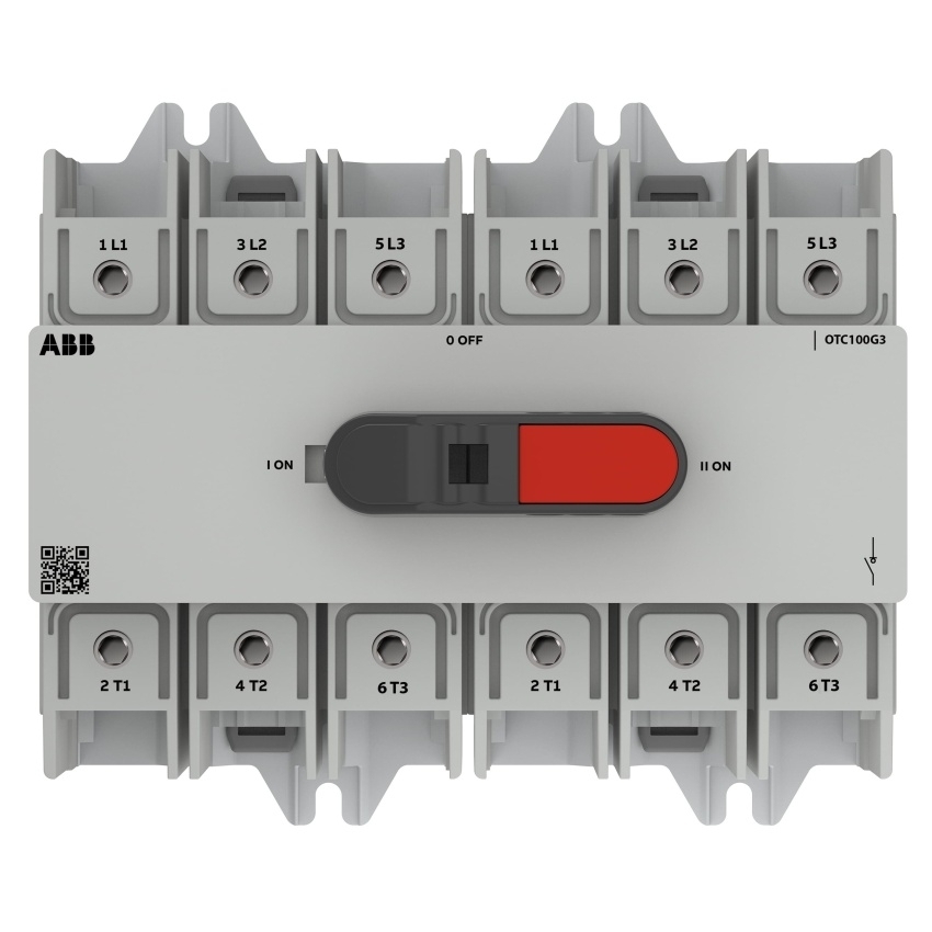 ABB PŘEPÍNAČ OTC100G3-3BS 3-PÓLOVÝ I-0-II ITH=100A 100A/AC-23A/415V 100A/AC-22A/415V ZADNÍ MONTÁŽ VČ. UZAM. RUKOJETI PRO PŘÍMÉ OVL. 1SCA162747R1001