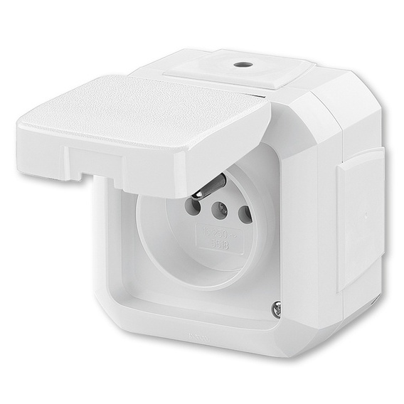ABB VARIANT 5518N-C02540 B ZÁSUVKA JEDNONÁSOBNÁ S OCHRAN. KOLÍKEM S VÍČKEM PRO PRŮBĚŽ. MONTÁŽ IP54 BÍLÁ