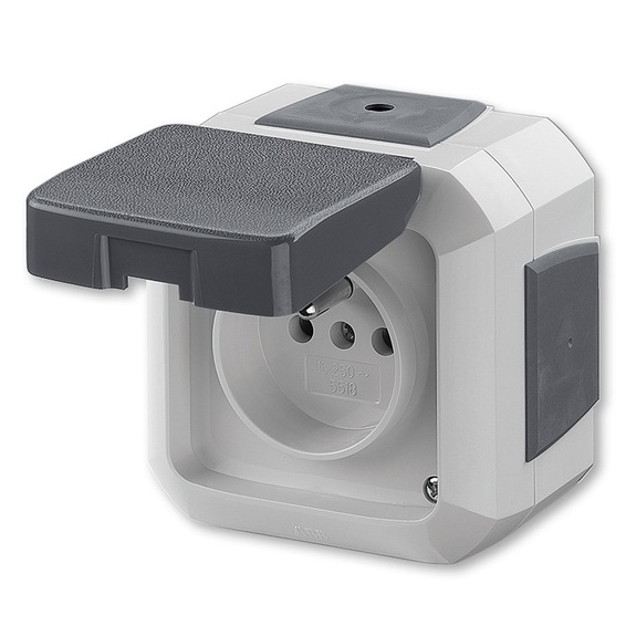 ABB VARIANT 5518N-C02540 S ZÁSUVKA JEDNONÁSOBNÁ S OCHRAN. KOLÍKEM S VÍČKEM PRO PRŮBĚŽ. MONTÁŽ IP54 ŠEDÁ