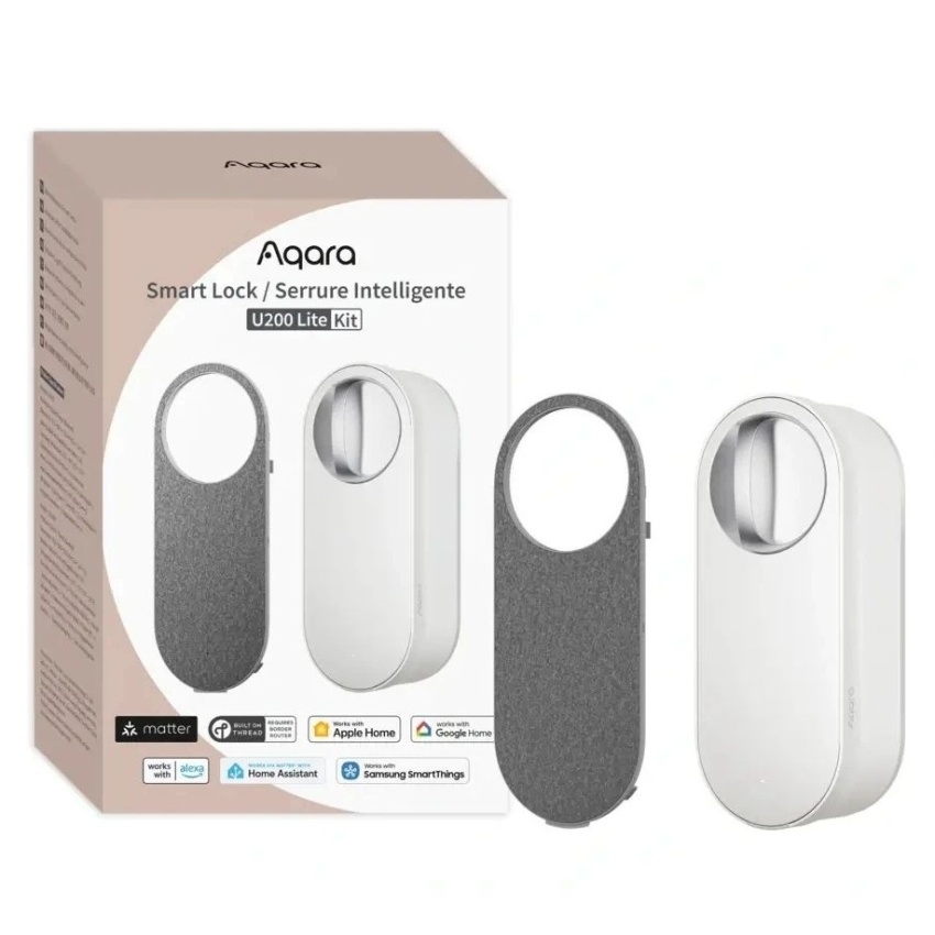 AQARA Smart Lock U200 Lite Kit (model EL-D03D) nabízí jednoduchou instalaci bez vrtání na cylindrické vložky EURO s nouzovou funkcí. Zámek umožňuje odemykání pomocí Bluetooth aplikace, NFC štítku, hlasových asistentů Siri a Alexa nebo vzdáleně přes aplikaci v kombinaci s Hubem M100 či M3. Nabíjecí Li-ion baterie s kapacitou 2000 mAh vydrží až 6 měsíců a je dobíjena přes USB-C port. Díky protokolu Thread je zajištěna nízká energie a stabilní připojení v rámci smart domácnosti. Zámek disponuje automatickým zamykáním, tichým režimem provozu a pružinou pro bezdotykové otevření dveří.