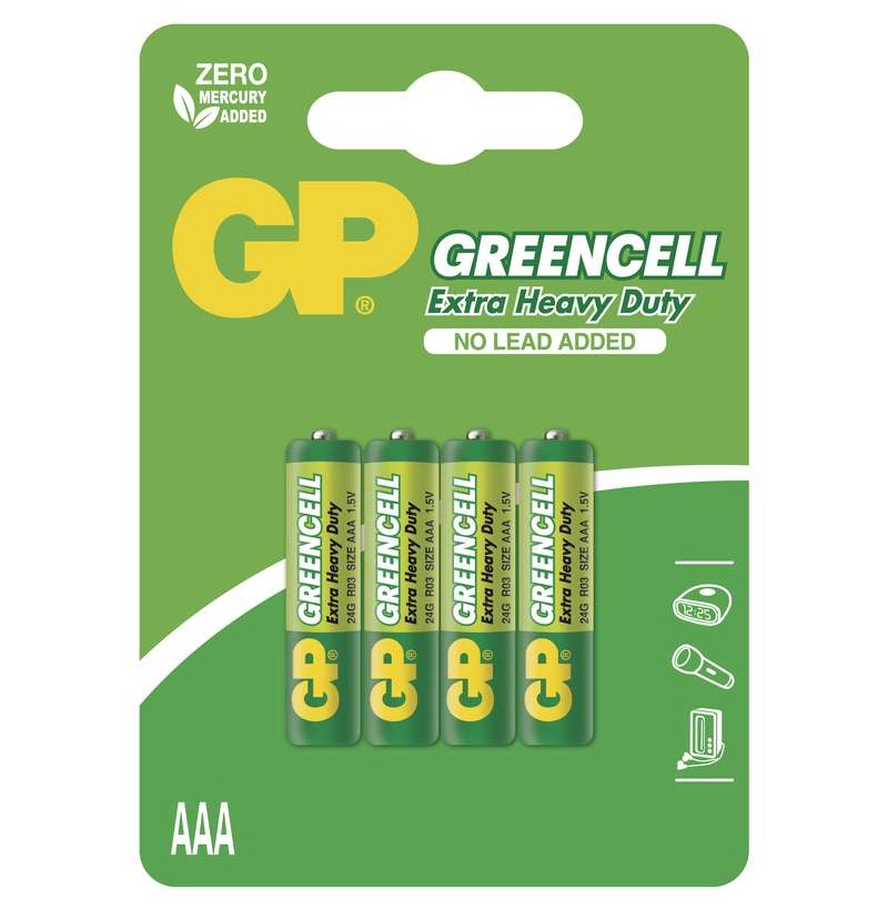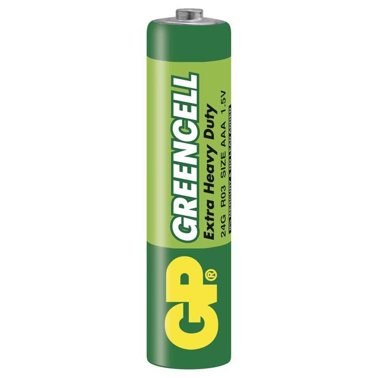 Nenabíjecí zinko-chloridová baterie GP o velikosti AAA (mikrotužka). Tato baterie je ideálním řešením pro napájení přístrojů s nízkou a střední spotřebou energie. Nejvhodnější je použití baterie do dálkových ovladačů, kalkulaček nebo nástěnných hodin.