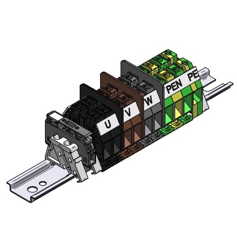 Stožárové výzbroje řady SV jsou sestavené z řadových svorek, pojistkových svorek a příslušenství. Svorkovnice jsou umístěné na DIN liště TH 35 nebo TH 15 o různých délkách (délka lišty je závislá na druhu stožárové svorkovnice). Do všech typů stožárových svorkovnic lze připojit hliníkové i měděné vodiče. Všechny svorky v sestavách stožárových svorkovnic jsou označeny popisem a včetně barvy izolačního pouzdra jasně definují, pro jaký vodič je svorka v sestavě určena. Nosič pojistky - RSP 4, sestava složena ze svorek RSA.