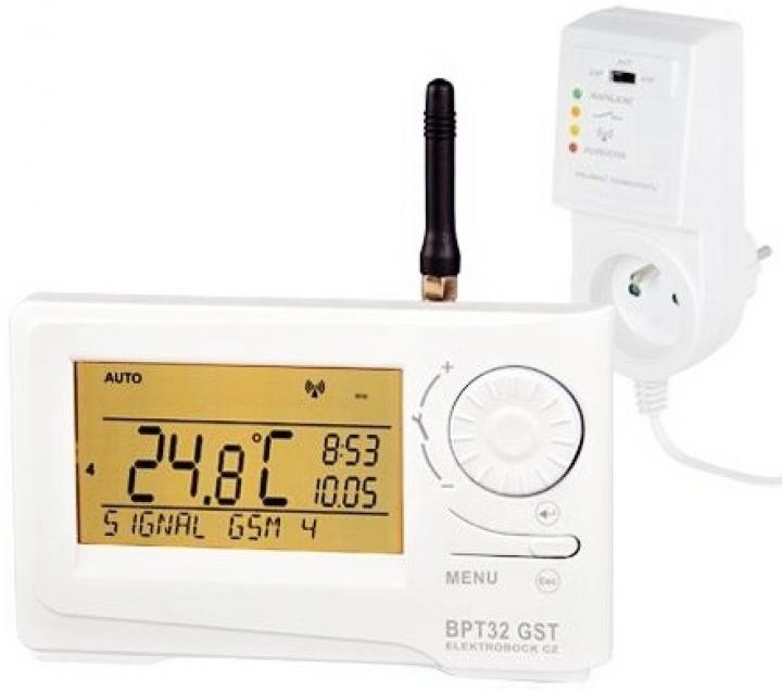 Unikátní bezdrátový termostat, který je možné ovládat na dálku pomocí SMS zpráv z Vašeho mobilního telefonu. Bezdrátová varianta umožňuje snadnou a rychlou instalaci, odpadá tak pracná a zdlouhavá instalace vedení mezi termostatem a kotlem s průchodem přes podlaží. Velký podsvícený displej na vysílači umožňuje ovládání termostatu i za tmy. Navíc, nabízí intuitivní navigaci ve vybraném jazyku (CZ/PL/EN/DE/RU/SK). Přijímač je vybaven systémem samoučení kódu a pamětí E-EPROM, která uchová uložený kód i při výpadku napětí. BPT32 GST pracuje s obousměrnou komunikací na frekvenci 433, 92 MHz.