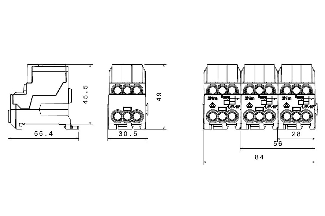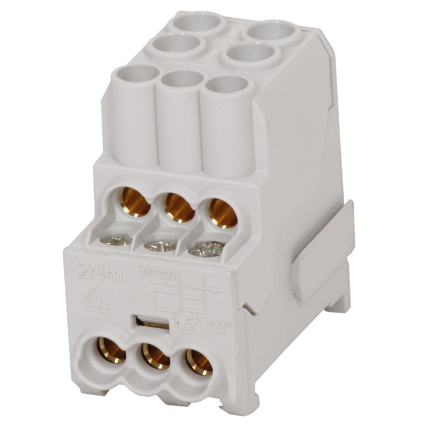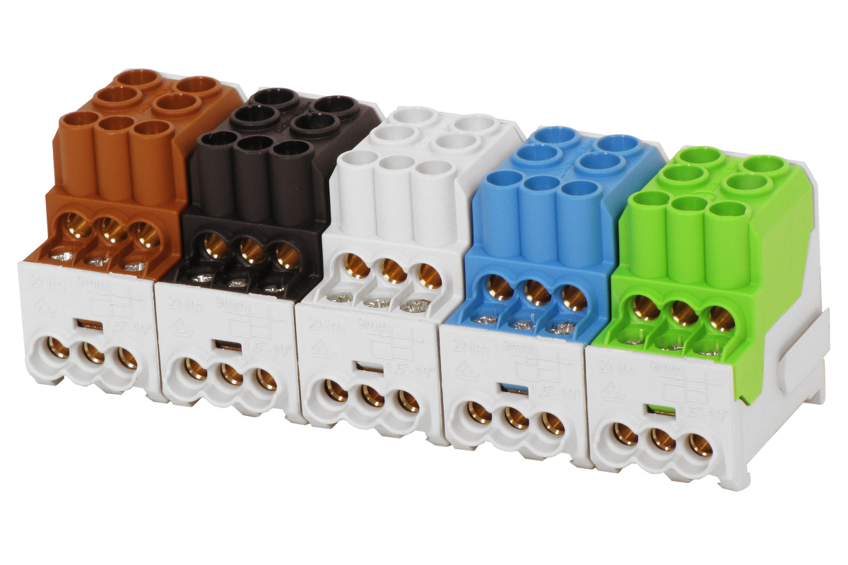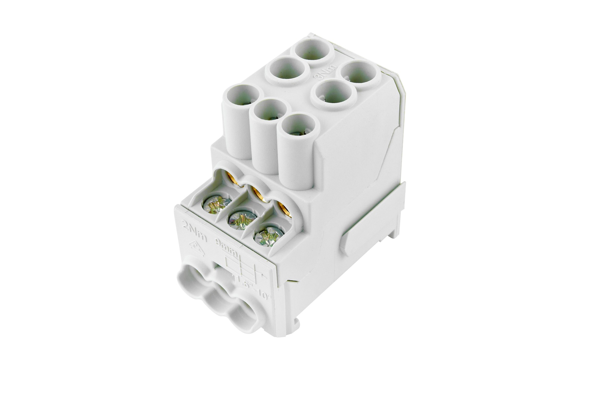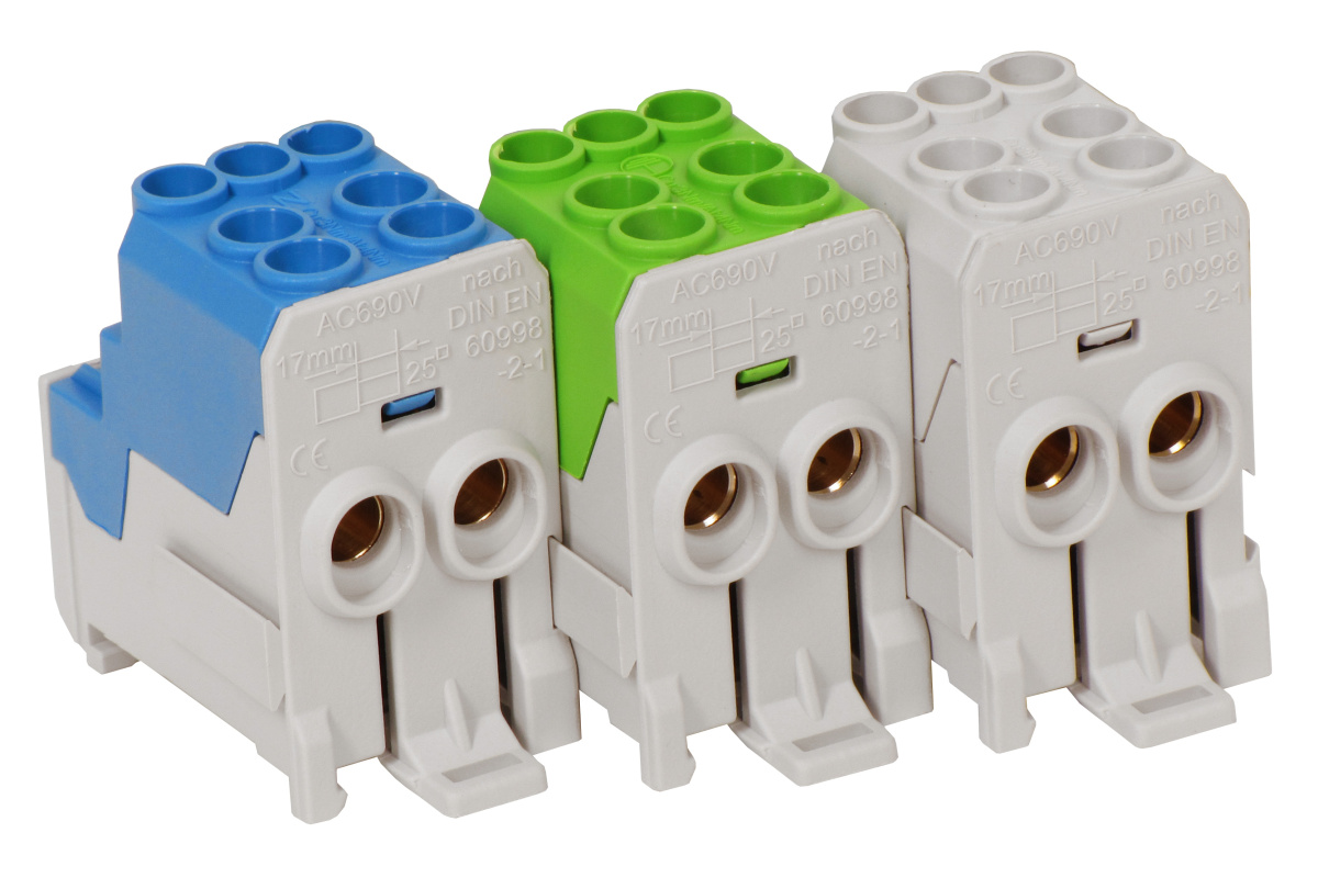 Svorkovnice - blok pro rozdělení fází, řaditelný - UVB 100A L, šedý.