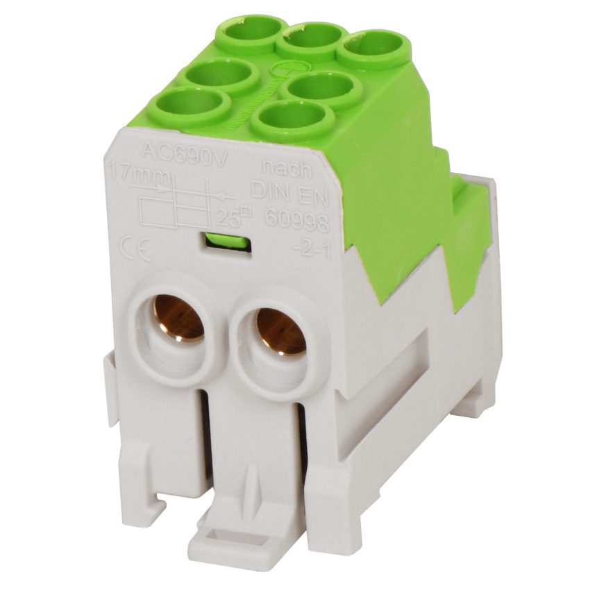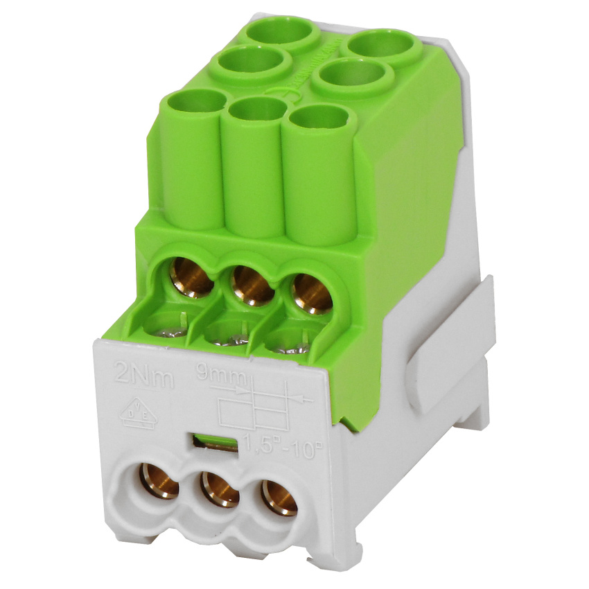 Svorkovnice - blok pro rozdělení fází, řaditelný - UVB 100A L, zelený.