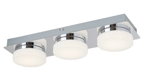 Trojité stropní svítidlo Hilary bude skutečně útulným doplňkem s efektem hvězdného světla do vašeho moderního obývacího pokoje nebo ložnice. Chromované tělo kovového a plastového bodového svítidla je doplněno stínítky v barvě opálu, pod kterými jsou skryty tři vestavěné energeticky úsporné LED světla. Spotřeba energie světelných zdrojů je 15 W, jejich svítivost je 1200 lumenů a jejich životnost je 20 000 hodin. Jejich barevná teplota je 4000 K, takže osvětlí své okolí přirozeným bílým světlem. Délka obdélníkové dekorativní základny svítidla je 430 mm. Trojité stropní svítidlo Hilary je dodáváno s 5-letou zárukou.