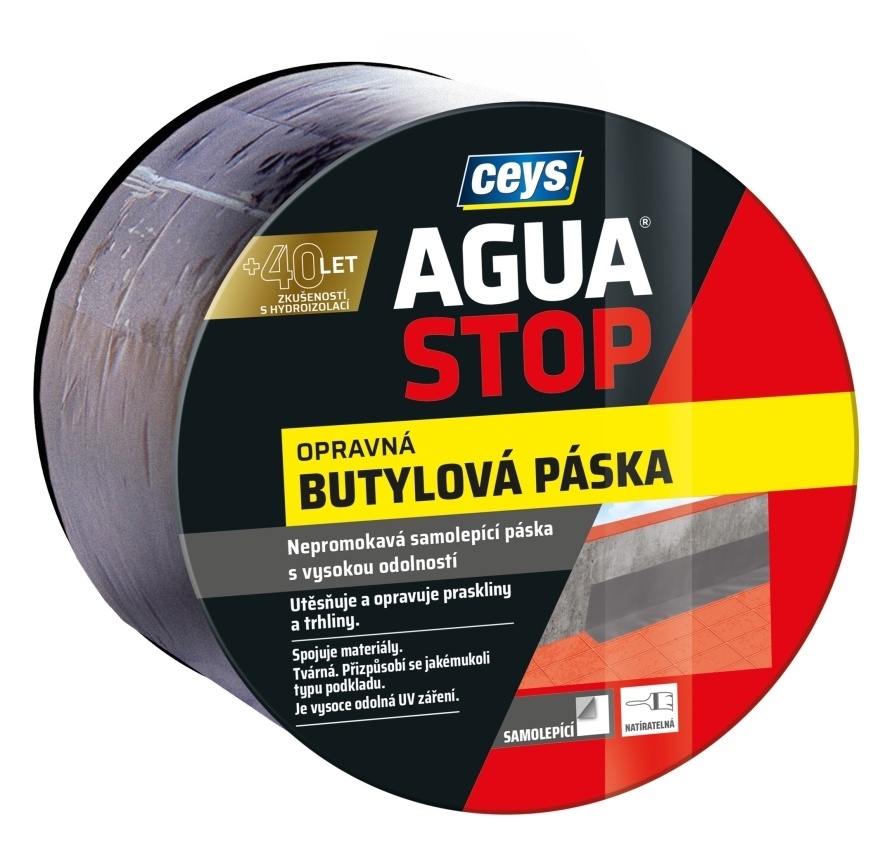 Samolepicí páska pro utěsnění a opravy trhlin a prasklin. Lepí za studena bez nutnosti zahřívání a díky butylu dobře těsní a je 100% vodotěsná.