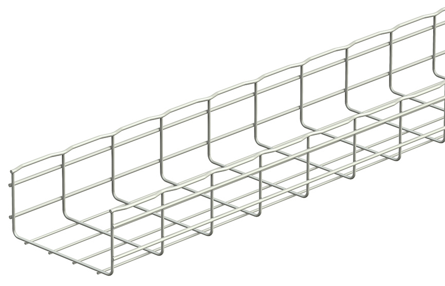 Kabelový drátěnný žlab z oceli. Povrchová úprava: elektricky zinkováno po výrobě.