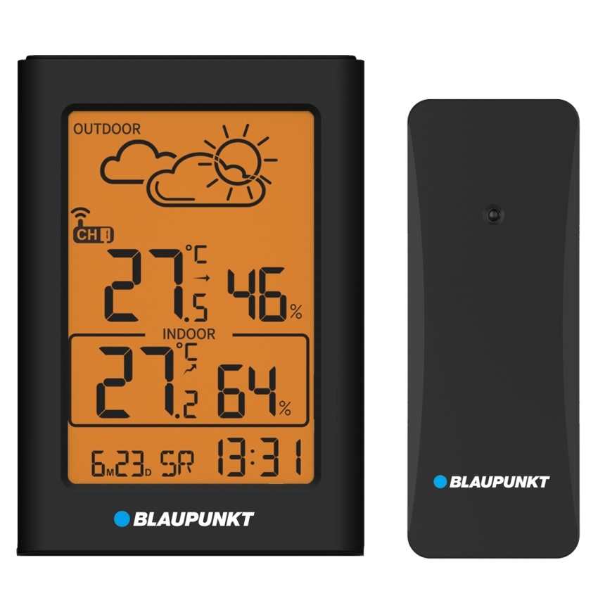 Meteorologická stanice Blaupunkt WS15BK měří vnitřní a venkovní teplotu a vlhkost, zobrazuje trendy teploty, má hodiny s kalendářem a funkcí budíku a podporuje až tři bezdrátové senzory. Přenosná stanice WS15WH poskytuje aktuální informace o venkovní teplotě a vlhkosti, což vám pomůže se správně obléknout před odchodem z domu. Doma vám zase sdělí, jaké jsou podmínky uvnitř.