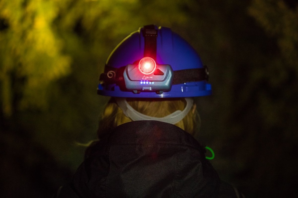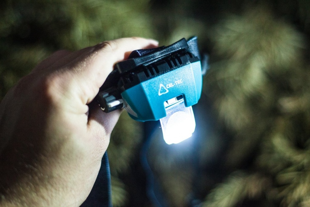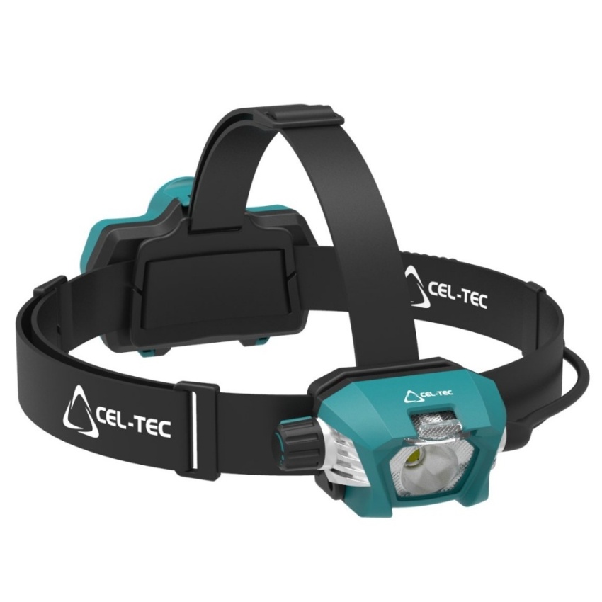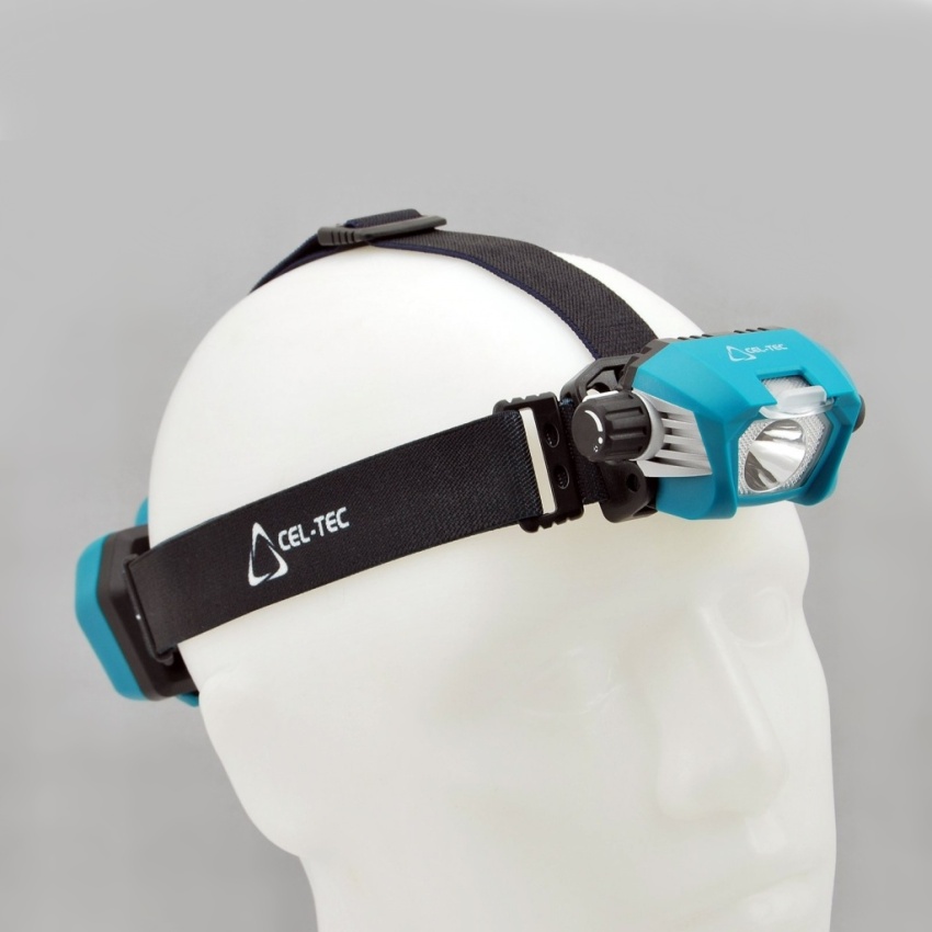 Vysoce výkonná nabíjecí čelovka CEL-TEC HL1000 se zadním bezpečnostním světlem.