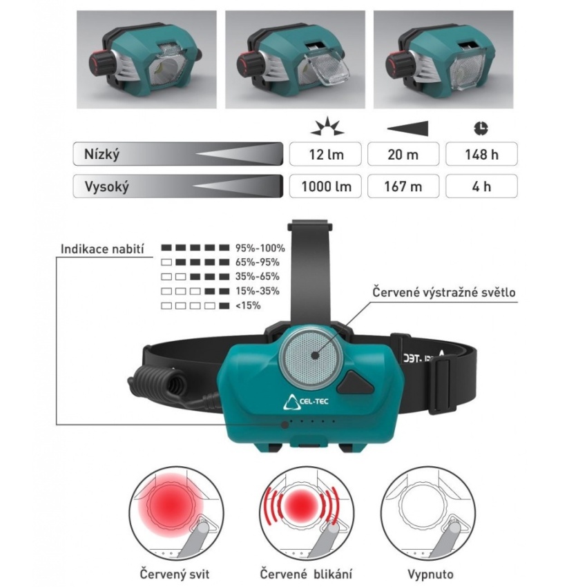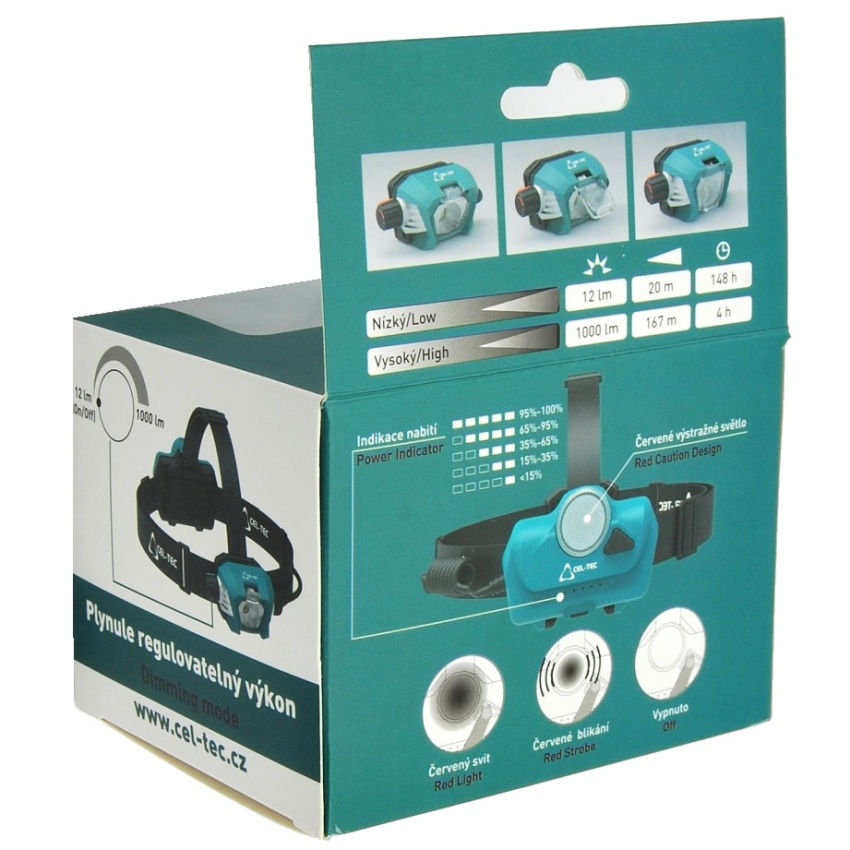 CEL-TEC ČELOVKA HL1000 1000LM, ZADNÍ A PŘEDNÍ SVĚTLO 2010-129