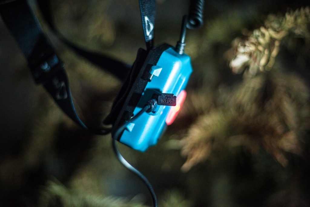 HL1000 pro napájení využívá dvojici nabíjecích článků typu 18650, které jsou navíc snadno vyměnitelné. Bateriové pouzdro je umístěno mimo hlavní tělo čelovky a slouží zároveň jako zadní bezpečnostní světlo (červený svit nebo blikání). Baterie je možné nabíjet přímo v pouzdře pomocí microUSB konektoru (nabíjecí kabel je součástí balení) nebo použitím externí nabíječky. Dvojice článků poskytne dostatek energie na 4 hodiny svícení při maximálním výkonu a na 148 hodin při nejnižším. Bateriové pouzdro je také vybaveno indikátorem nabití baterií.