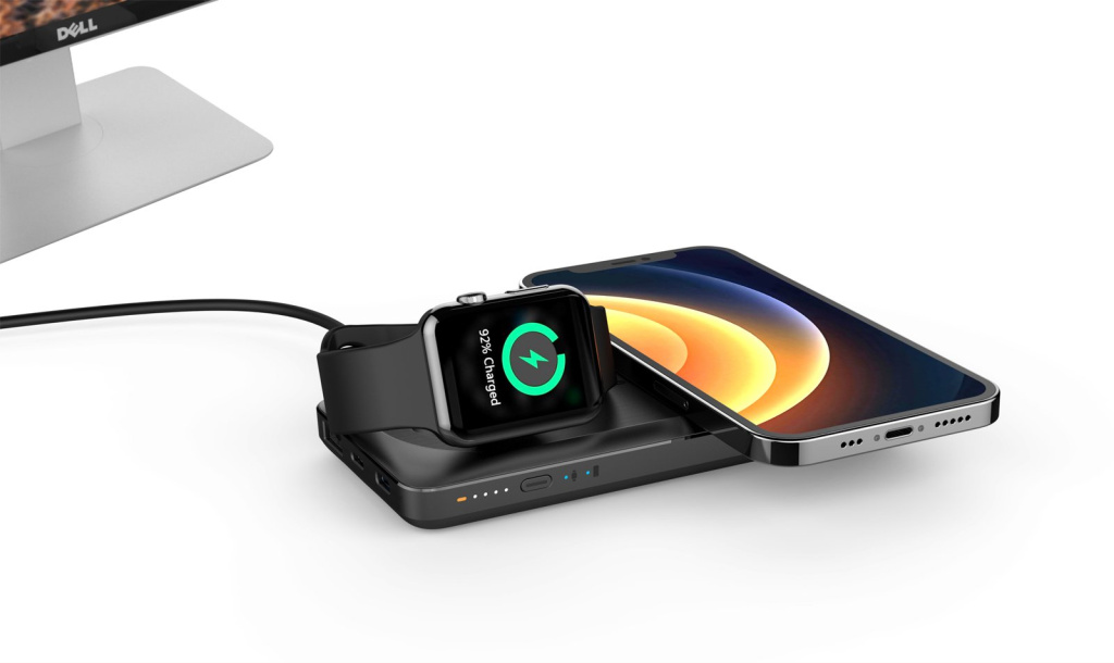 - Díky 20W vstupu PD Lightning a konektoru USB-C vstup/výstup, které podporují nabíjení PPS, PD/QC3.0 a výstupnímu portu USB QC3.0, může powerbanka poskytnout vašim telefonům nebo tabletům výkonné a rychlé nabíjení. Bezdrátový výstup pro telefony a sluchátka AirPods podporuje 5W, 7,5W (pro iPhone), 10W a 15W Max bezdrátové rychlé nabíjení. Výstup pro hodinky iWatch nabízí výkon 2,5 W.
