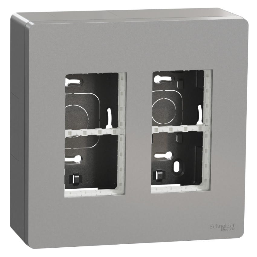 Centrální jednotka 2x4 modulů vertikální povrchová Schneider Unica System+ aluminium NU122430