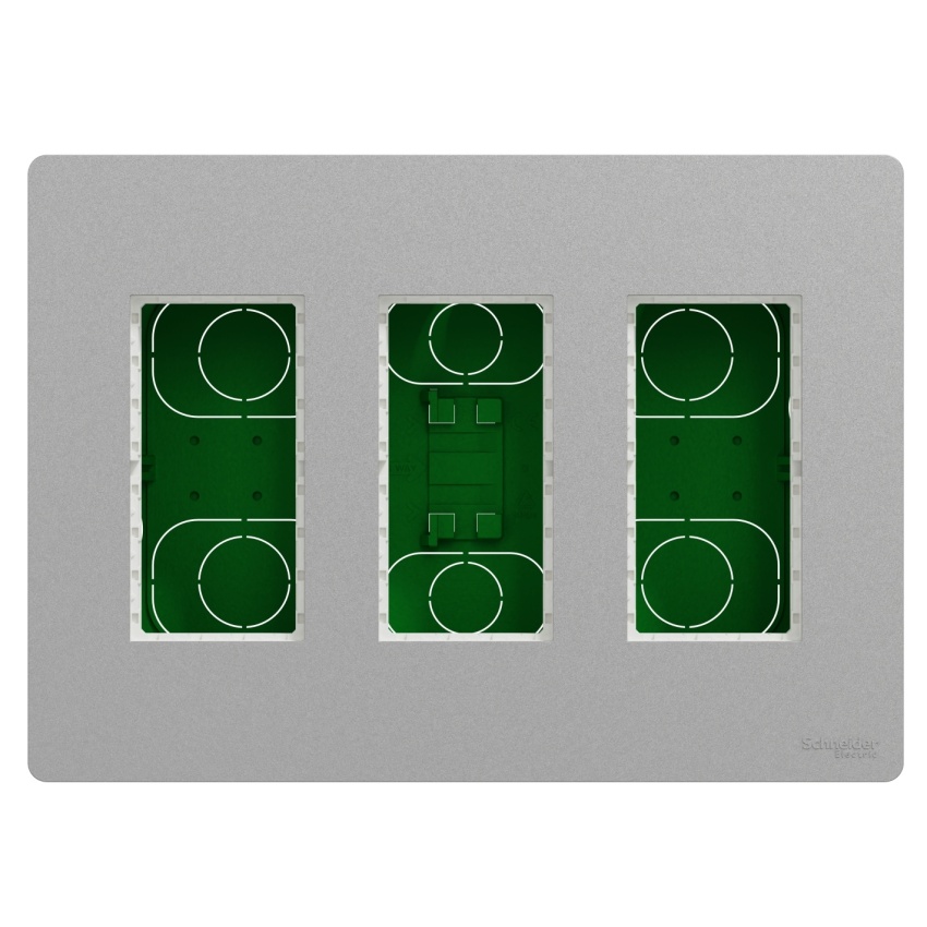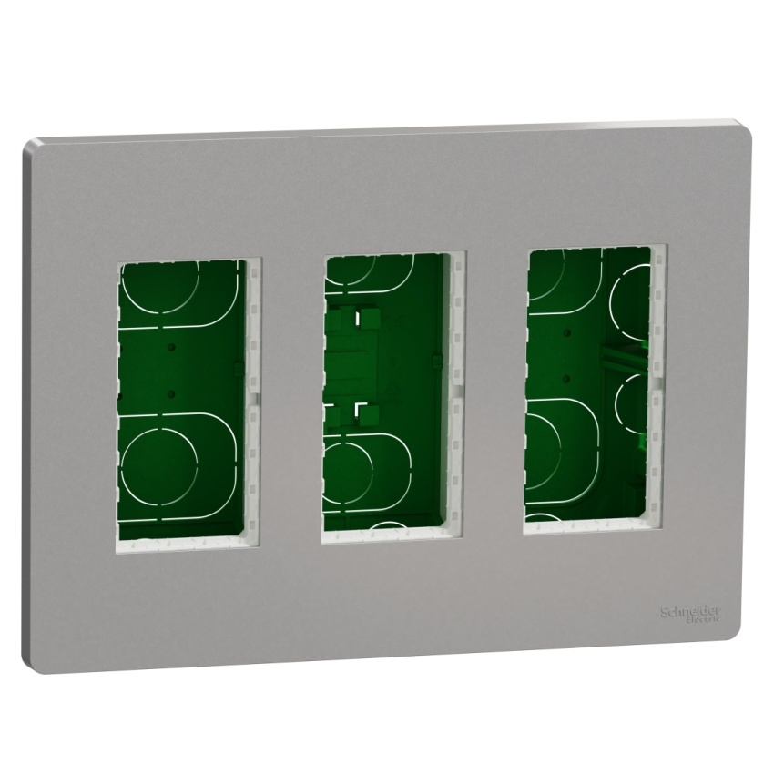 Schneider Electric Nová Unica centrální jednotka NU173430 je v barvě aluminium. Jeho šířka je 230 mm, výška 165 mm, hloubka 62 mm. A výrobek váží 0,401 kg. S 3 x 4 moduly. Způsob upevnění tohoto zařízení jsou rozpěrkami, zapuštění. Její odpovídající montážní krabice může být zapuštěna do povrchu stěny s montáží pod omítku. Centrální jednotka je vyrobena z ABS (akrylonitril-butadien-styrenu), PC, takže je co nejodolnější. Kromě toho dosahuje úrovně ochrany IK04, která může pomoci chránit před nárazem. Také je šetrné k životnímu prostředí, přičemž je odolné vůči UV záření, acetonu, alkoholu, čpavku, bělidlu, tekutému mýdlu, oleji, benzínu, kapalině na čištění oken. Tato centrální jednotka také neobsahuje SVHC (látky vzbuzující mimořádné obavy). Toto zařízení je (kompatibilní s) systémem Unica. Kromě toho neobsahuje halogeny, což je prospěšné pro vaše zdraví. Nová Unica zahrnuje sadu nových designů, barev a materiálů. Uživatelé mohou těžit z krásného designu, který odpovídá jejich stylu, a inovativních produktů. Nová Unica je navržena s chytrými funkcemi, které jsou flexibilní, snadno pochopitelné a rychle se instalují a poskytují řešení pro všechny požadavky zákazníků.
