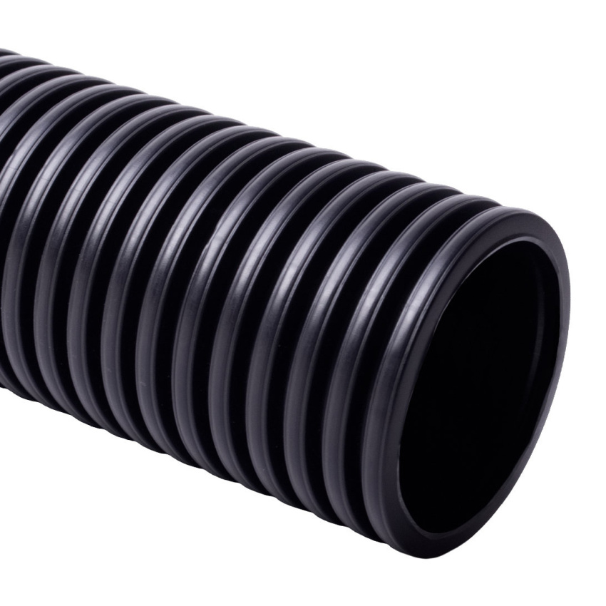 UV stabilní ohebná dvouplášťová korugovaná chránička (černá) - bezhalogenová ohebná dvouplášťová korugovaná chránička určená pro mechanickou ochranu všech druhů energetických a telekomunikačních vedení - je třeba dbát na to, aby nebyly překročeny hodnoty dovoleného zatížení chráničky. V každém svitku je zaveden zatahovací drát nebo provázek a nasazena spojka. V případě použití těsnicího kroužku je stupeň krytí IP 67.