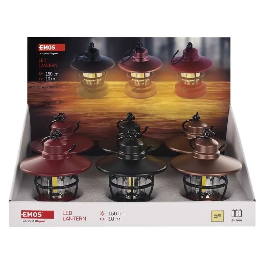 Praktická COB LED lucerna EMOS, 150 lm, napájení 3× AAA, sada 6 ks – ideální na kempování, zahradu i domácí použití.