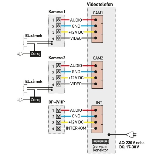 - připojení 2 kamerových jednotek a 2 domácích telefonů DP-4VHP