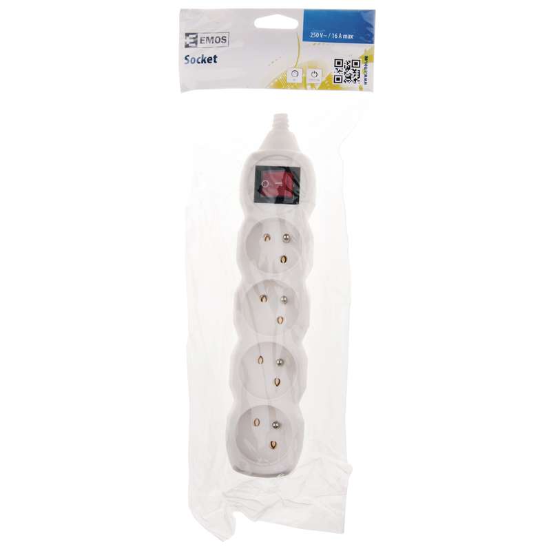 Samostatná zásuvka určená k napojení na pohyblivý přívod. Zásuvka je určena k připojení až čtyřech elektrických zařízení. Zásuvka má vypínač a bílou barvu.