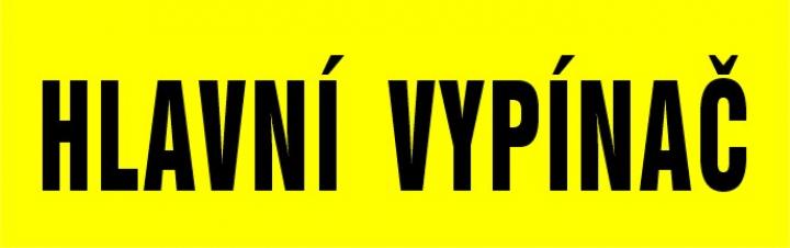 Samolepící etiketa: HLAVNÍ VYPÍNAČ.