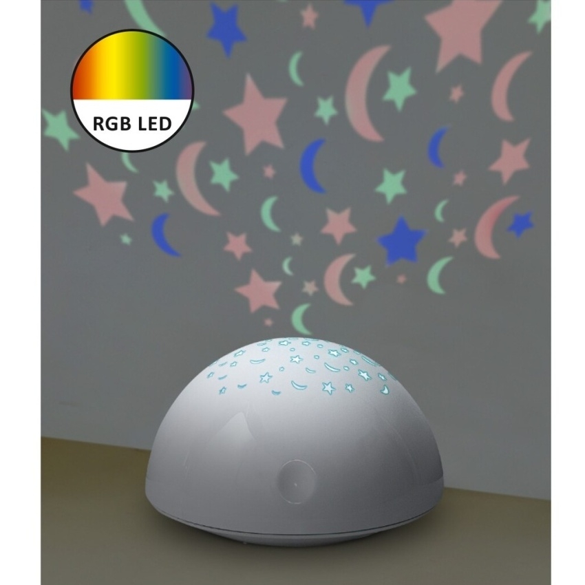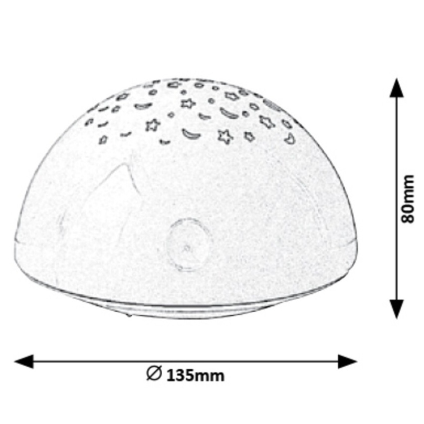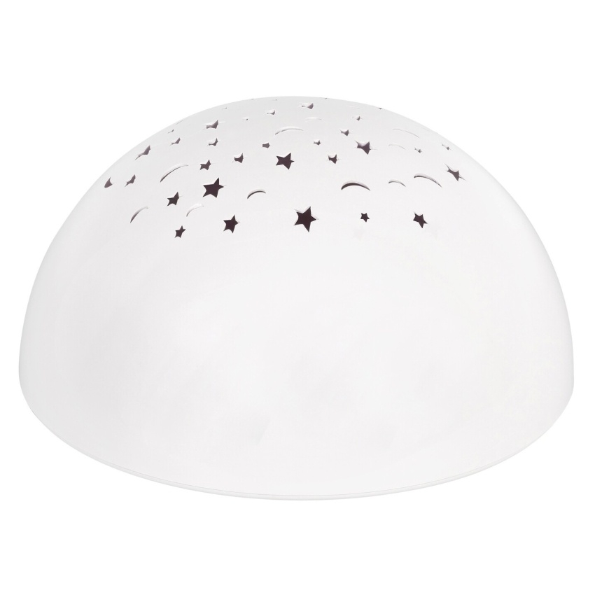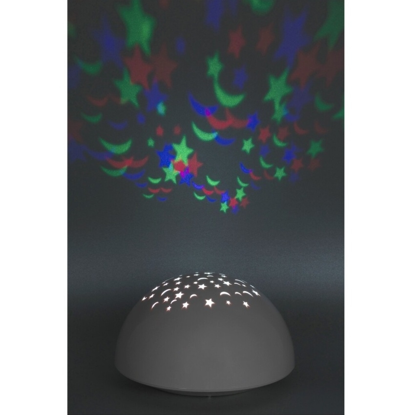 Dekorativní světlo Lina jistě zaujme vaše nejmenší barevnými hvězdami a měsíci, ale může také pomoci vašim starším dětem usnout. Tato polokulová, bílá dekorace je vyrobena z plastu a dá se umístit na noční stolek nebo na stůl a ihned můžete vypínačem zapnout krásnou projekci. Samozřejmě, že tento magický trik můžete udělat nejen před spaním, ale i děti samotné rádi experimentují s pokusem promítat světlo na různé povrchy za různých světelných podmínek. Lina má funkční design a vestavěný, energeticky úsporný LED světelný zdroj spotřebuje 0,5 W energie a vyzařuje RGB světlo. Dekorativní světlo má průměr 135 mm a výšku 80 mm.