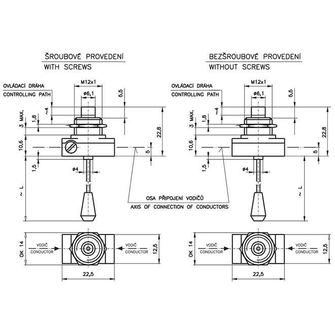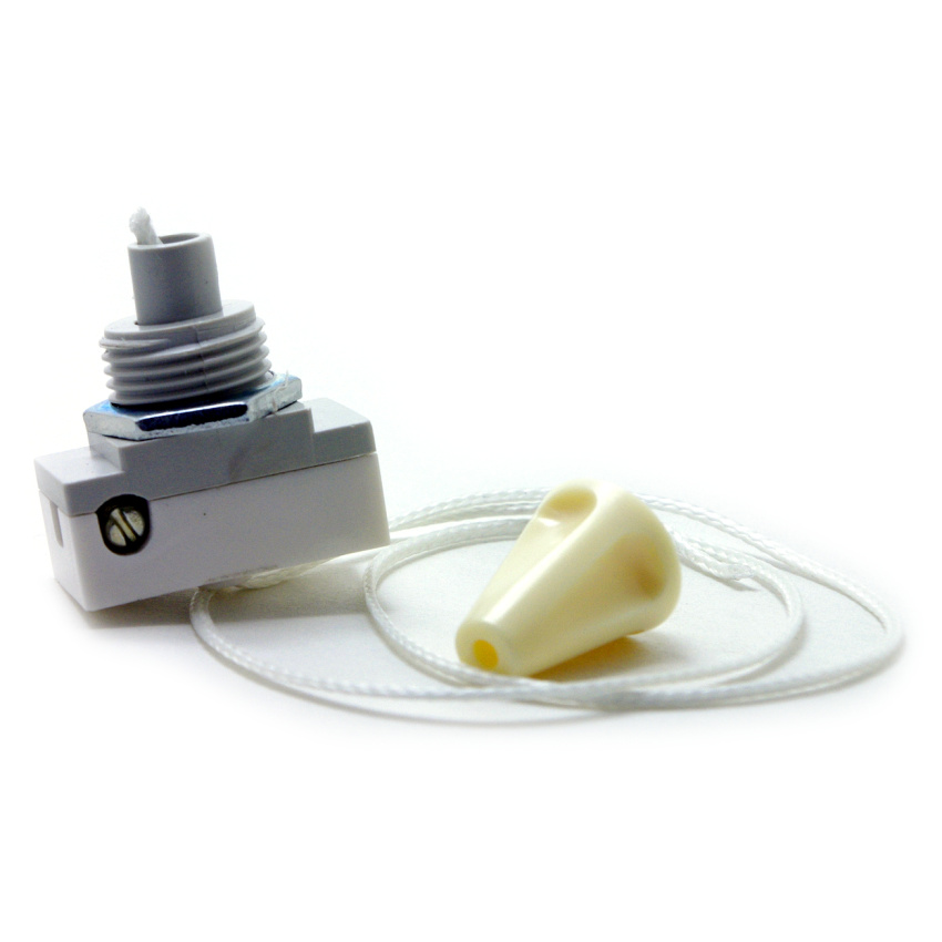 Jednopólový tahový spínač lampičkový, délka šňůry 200mm, vestavné šroubové provedení.