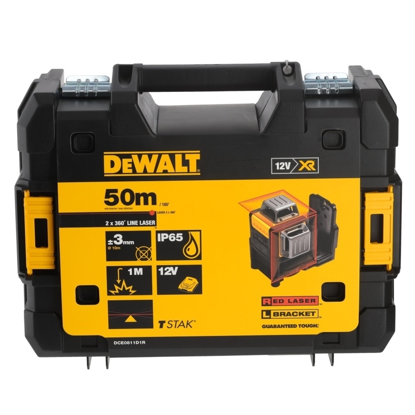 DEWALT LASER ČERVENÝ ČÁROVÝ 2X360ST S 1X VERT. 1X HORIZONT. PAPRSEK 1X10,8V XR AKUMULÁTOR, NABÍJEČKA DCE0811D1R