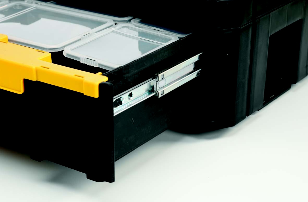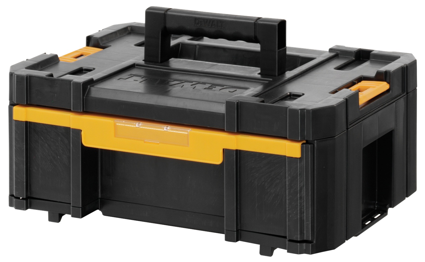 - Řada nástrojových skříní a příslušenství TSTAK od DeWalt je profesionální řada stohovatelných úložných systémů. Tyto nástrojové boxy mají pevnou plastovou konstrukci, která je durable a houževnatost.