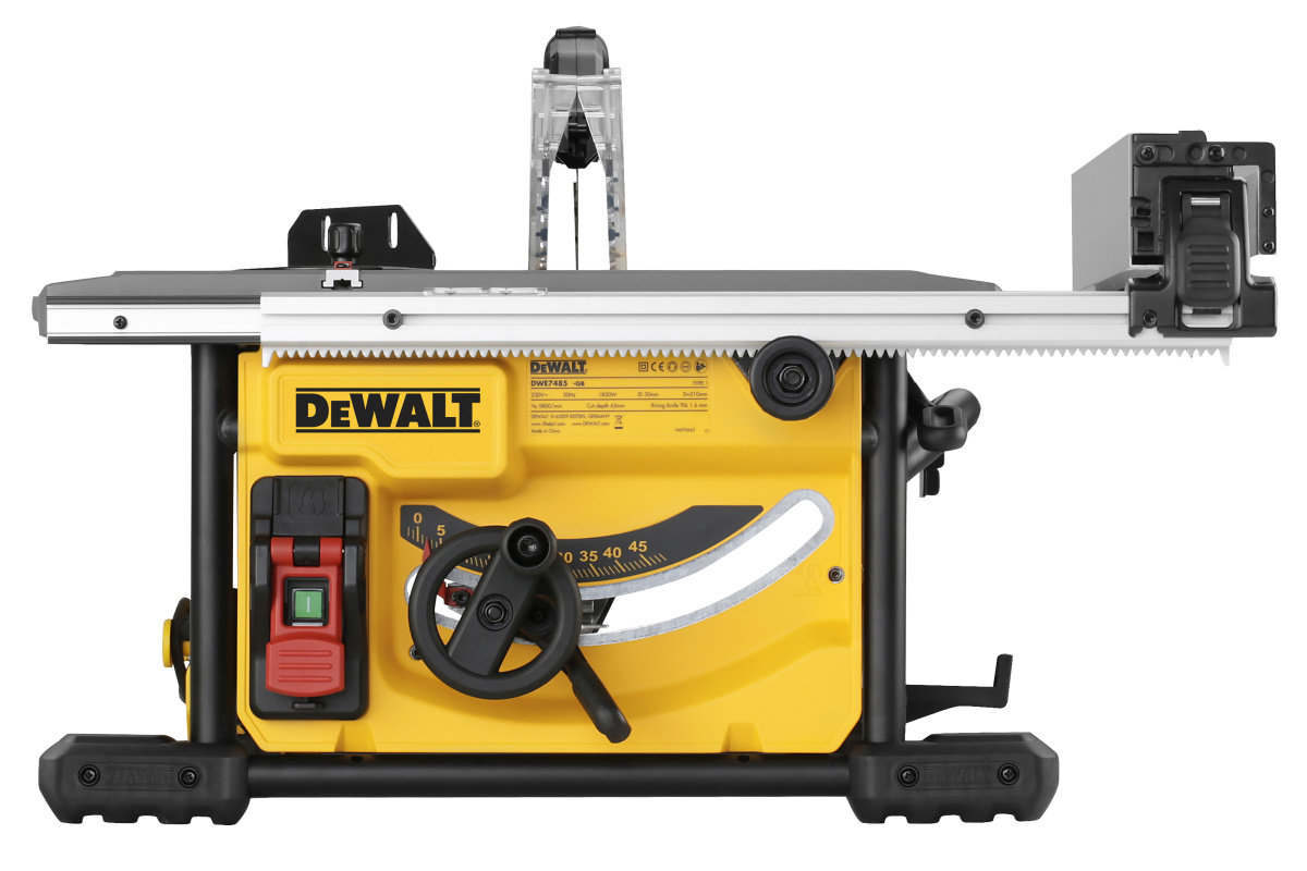 DWE7485 DeWALT Stolová kotoučová pila přenosová s plynulým nastavením úhlu, 1850W, 210mm, 20,5kg
