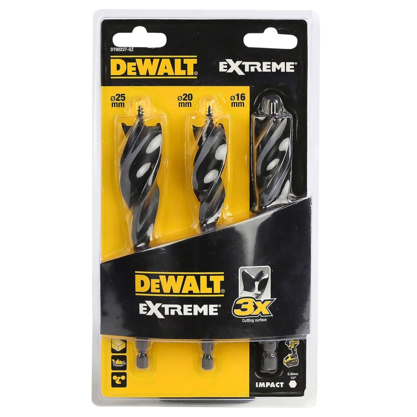 DEWALT SADA 3 DÍLNÁ TŘÍBŘITÝCH VRTÁKŮ DO DŘEVA 16 20 25MM 152MM DT90237-QZ