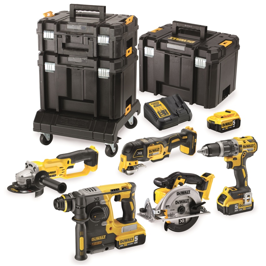DCK654P3T DeWalt kombo sada 6 aku nářadí 18V 3x 5,0Ah, s podvozkem a kufry TSTAK