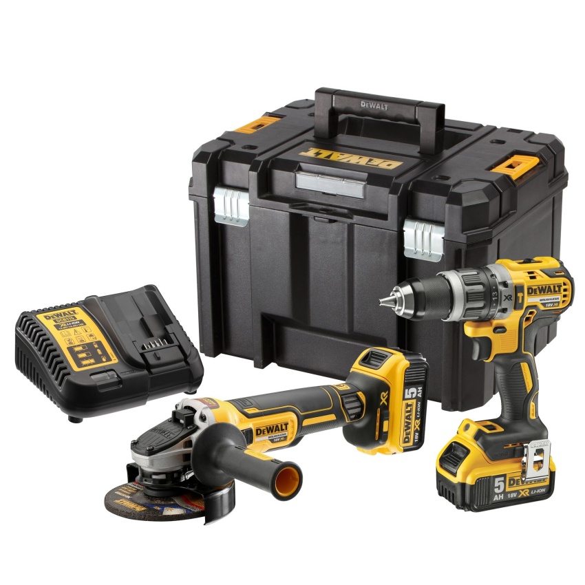 DEWALT SET NÁŘADÍ DCK2080P2T 18V BEZUHLÍK, VRTAČKA DCD796 A BRUSKA DCG405, 2X LI-ION 5AH