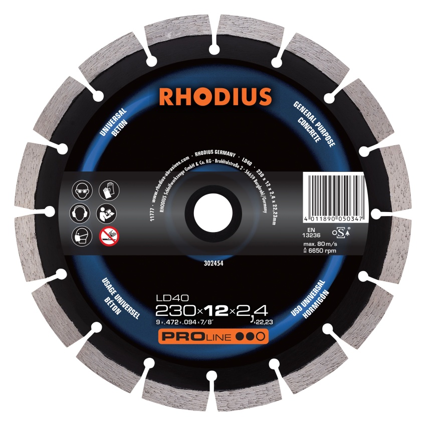 - RHODIUS LD40 - 230 x 10,0 x 2,4 x 22,23 - Diamantový řezací kotouč - Beton - 302454