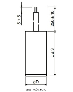 Kondenzátor 4uF/400V motorový běhový a rozběhový, kabel 250mm, bez uchycení