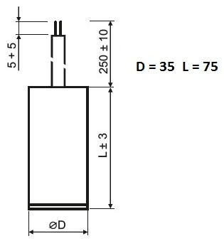 Kondenzátor 16uF/400V motorový běhový a rozběhový, kabel 250mm, bez uchycení