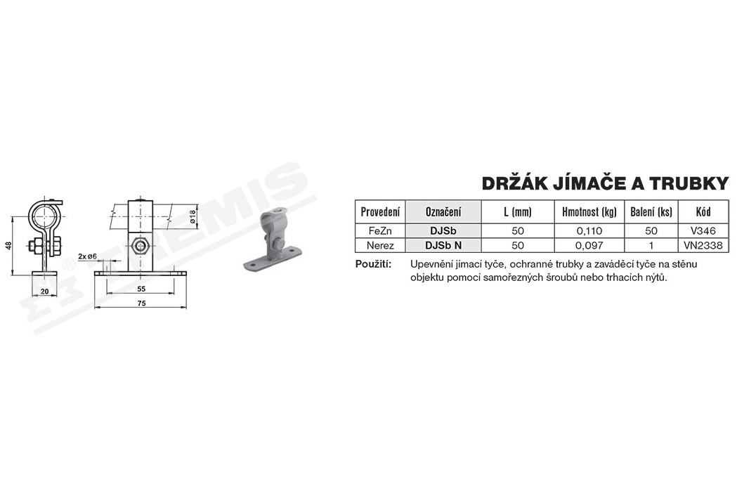 Držák jímače a trubky na stěnu nerez TREMIS DJSb N VN2338