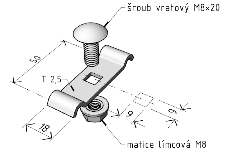 Držák DZM 11 se používá k připevnění kabelových žlabů k nástěnným stojnám STNM, prostorovým stojnám STPM, nebo k jiným ocelovým konstrukcím a to zejména u vodorovných tras. U žlabu šířky 100 mm se připevnění k profilu provede pouze uchycením jednoho z krajních drátů (podélníků) pod držák.