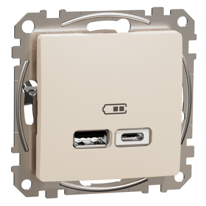 Dvojitá USB A+C nabíječka Schneider Electric Sedna Design SDD112402, 2.4A, béžová