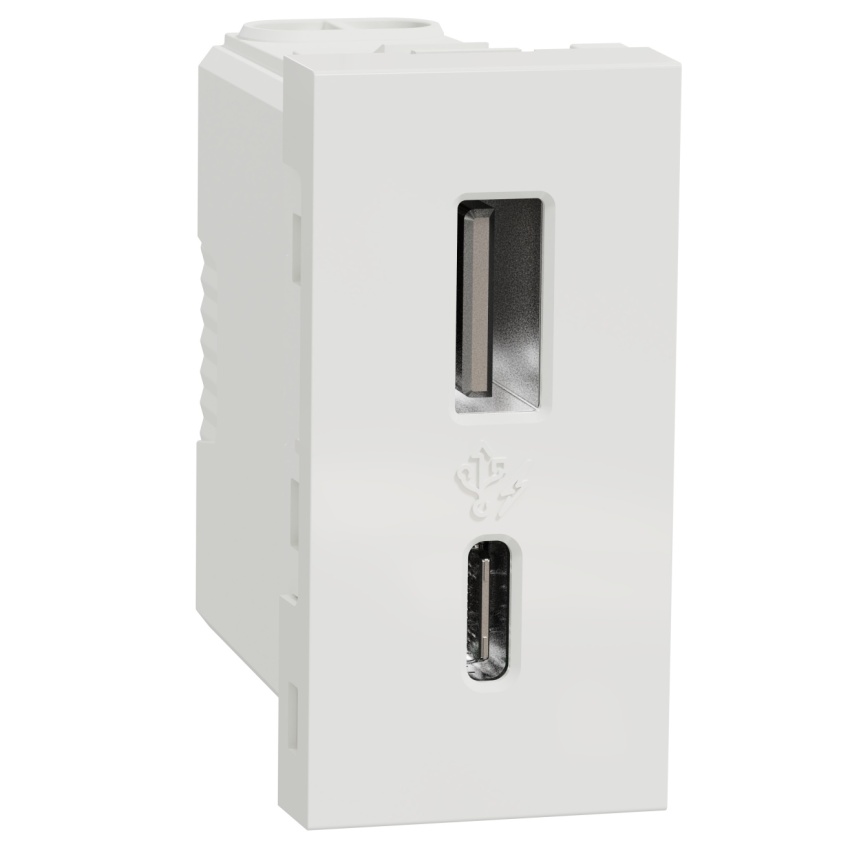 Dvojitý nabíjecí USB konektor Schneider Unica A+C 2.4A 1m bílá NU301618
