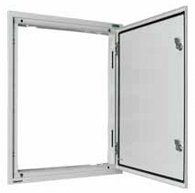 Rám s dveřmi. S jednobodovým otočným plastovým zámkem. Sada pro uzemnění dveří součástí dodávky.