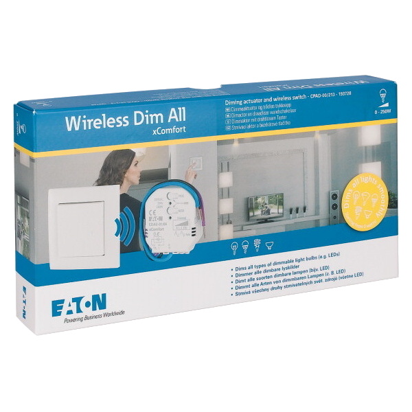 EATON XCOMF. RF SET STMÍVACÍ (AKTOR 250W+TLAČÍTKO LESKLÁ BÍLÁ 55X55MM) CPAD-00/213, 193728