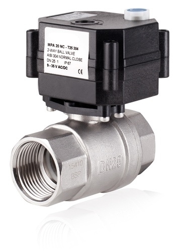 série MPA20 velikosti: 1/2", 3/4", 1" maximální pracovní tlak: 1 MPa (10 Bar) médium: tekuté, plynné napětí: 9–35 VDC/AC, 110–240 V AC maximální pracovní proud: do 500 mA garantovaná životnost: 70 000 cyklů čas odezvy/otevírací/zavírací čas: 6 sekund tělo ventilu: MOSAZ, AISI 304, AISI 316 tělo pohonu: termoplast