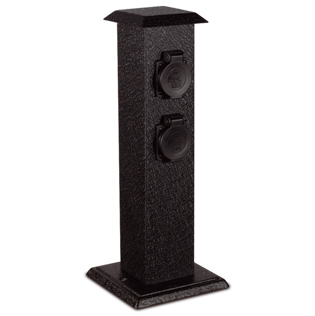 Kovový rozvodový zahradní sloupek s krytkami zásuvek je vhodný například pro připojení zahradní techniky. Disponuje 4 zásuvkami a je určen pro pevné povrchy.