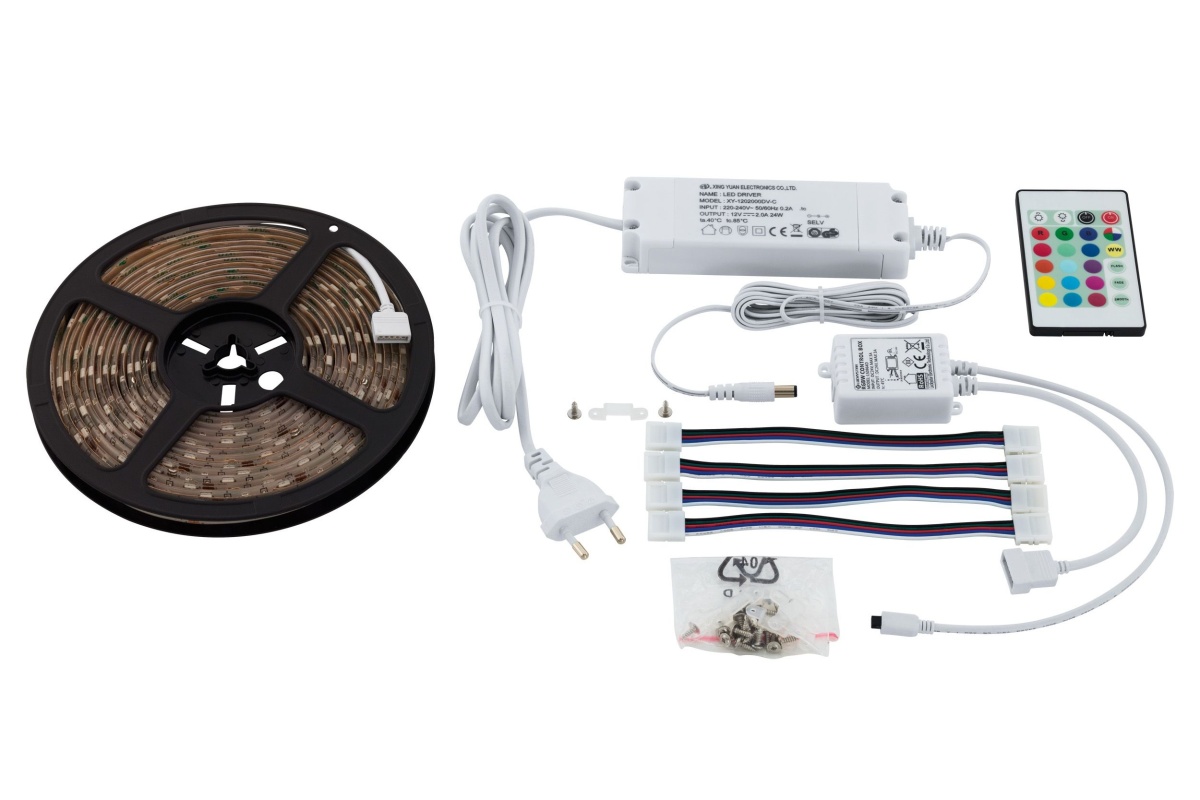 Flexibilní proužek LED je 5m dlouhý a je zakončen průhledným plastem. Výrobek má integrované LED diody, které produkují příjemné světlo, které lze nastavit podle potřeby. Přiložený dálkový ovladač dokáže nastavit jas a vybrat si mezi teplým bílým světlem, různými barvami RGB a třemi režimy osvětlení. Pás je ideální pro nepřímé a dekorativní osvětlení pro širokou škálu objektů a prostorů v domácnosti. Použijte ji k nepřímému osvětlení prvků, jako je šatní skříň, stěny, okraj postele, kuchyňská linka nebo obývací pokoj. LED pásek má každých 10 cm značky, které ukazují, kde jej lze zkrátit nůžkami a spojit díky čtyřem dodávaným propojovacím kabelům. Montáž je rychlá a snadná pomocí lepicích pásků na zadní straně výrobku.
