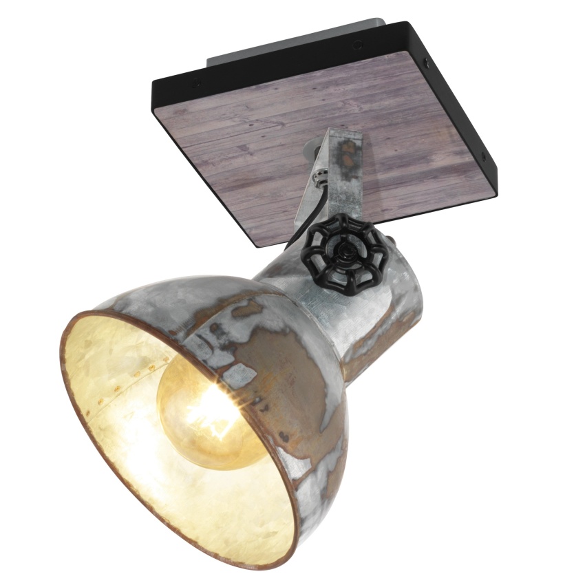 EGLO SVÍTIDLO 49648 BARNSTAPLE 1X40W E27 STROP. DŘEVO OCEL HNĚDÁ PATINA ČERNÁ
