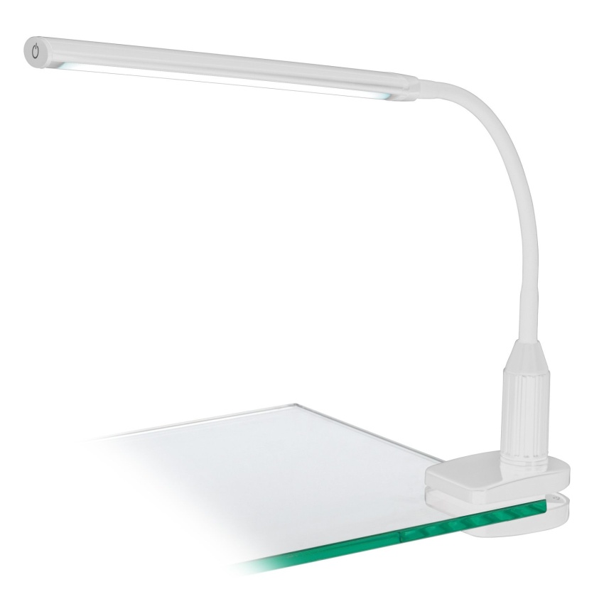 Klipové světlo LAROA má bílé plastové tělo a nastavitelné rameno a hlavu. Integrované LED diody pod bílým plastovým krytem vytvářejí neutrální bílé světlo. Klip je nastavitelný, aby bylo zajištěno, že je kompatibilní s různými stolními deskami a policemi. Lampu lze snadno zapínat a vypínat dotykem zóny „dotkněte se mě“ na hlavě, kde lze vybrat jednu z pěti úrovní jasu. Připínací světlo je ideální pro použití jako pracovní světlo nebo lampa na čtení a díky flexibilnímu tělu může okamžitě poskytnout soustředěné osvětlení vašeho pracovního prostoru.